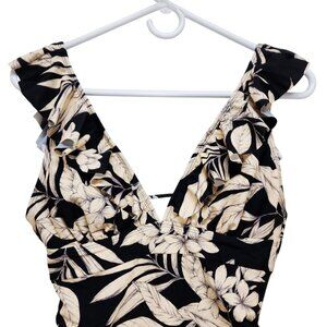 Cupshe Womens Black Beige Floral Ruffle One-Piece Swimsuit Open Back Design SZ M