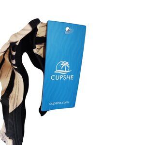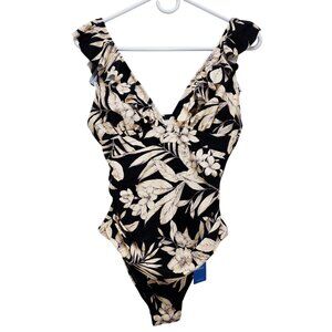 Cupshe Womens Black Beige Floral Ruffle One-Piece Swimsuit Open Back Design SZ M