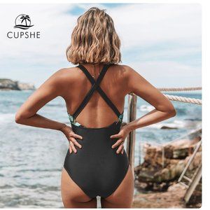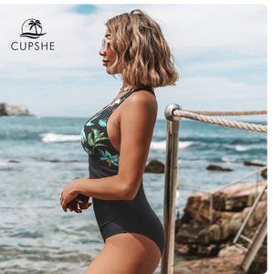 Cupshe Women's Black Floral One Piece Swimsuit Strappy XS NWT