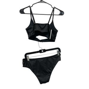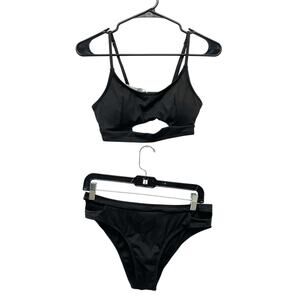 Cupshe Women's Black Onyx Cutout Scoop Neck Bralette & Hipster Bikini Set Medium
