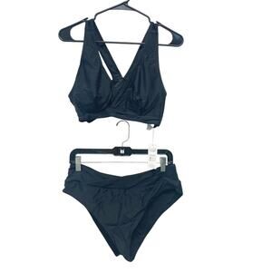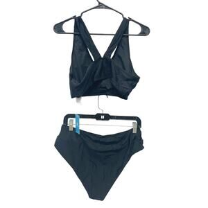 Cupshe Womens Black Onyx V Neck Bralette V Front High Waist Bikini Set Set Large