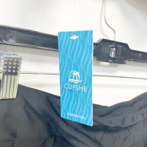 This Cupshe bikini set features a timeless black color in a large size, designed for comfortable wear. The mix of polyester and spandex ensures flexibility and durability.