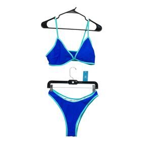 Cupshe Women's Blue Colorblock V Neck Tri Top Extra Cheeky Bikini Set Size S