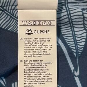 Elevate your beach style with this Cupshe women’s two-piece bikini in size Medium. Featuring a solid blue top with crisscross strappy back and a tropical leaf print bottom with adjustable side ties, this set combines comfort and style. Designed with removable padding and stretchy nylon-spandex blend for a flattering fit. Perfect for swimming, vacations, or lounging