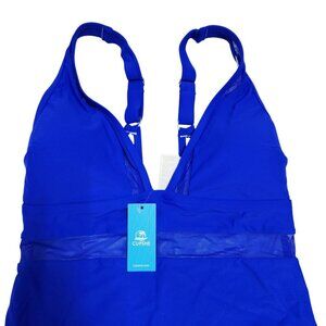 Cupshe Womens Blue One-Piece Swimsuit Size 1X Nylon & Elastane