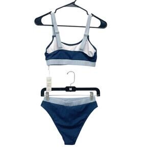 Cupshe Women's Blue Rib Colorblock Bralette & High Waist Bikini Set Size Small