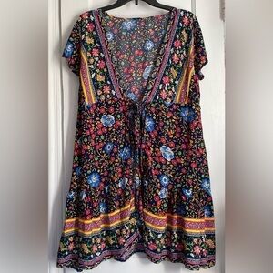 Cupshe Women’s Bohemian Casual Short Sleeves V-Neck Floral Wrap Peplum. Sz: Med