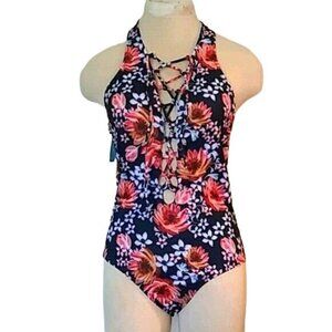 Cupshe Womens Floral Lace-Up Halter One-Piece Swimsuit Size Small