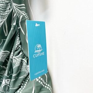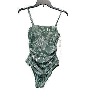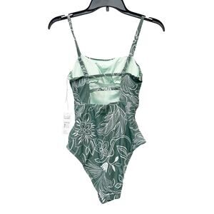 Cupshe Womens Floral Print Shirred Cutout One Piece Swimsuit Olive Green Size XS