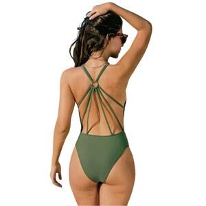 Cupshe Women's Green Bonita Strappy O-Ring Cheeky One Piece Swimsuit Large