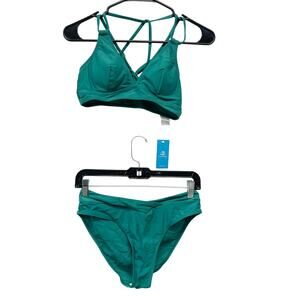 Cupshe Women's Green Strappy Teal Bikini Bralette & V Waist Bottoms Small