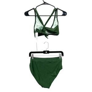 Cupshe Womens Green V Neck Knot Front High Waist Ruched Bottoms Bikini Set Small