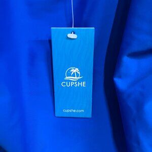 Cupshe Women’s Large Blue 2 Piece Tankini Swimdress with flattering ruched detailing. Designed with a supportive swim top and skirted tankini overlay for a chic, feminine look. Matching bottom style briefs provide comfort and secure coverage. Made with soft, stretchy nylon spandex for all-day wear at the beach or pool. Perfect for swimming, vacations, and resort wear.