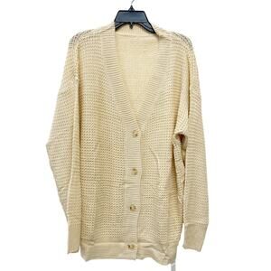 Cupshe Women's Long Sleeve Button Down Waffle Knit Cardigan Sweaters Cream Large