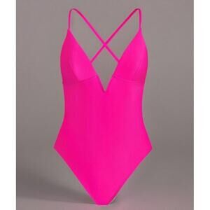 Cupshe Women’s Medium One Piece Swimsuit Hot Pink Plunge V Neck Crisscross Back