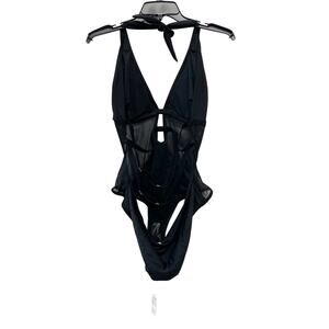 Cupshe Women's Mesh Plunging Halter One Piece Swimsuit Black Size Large