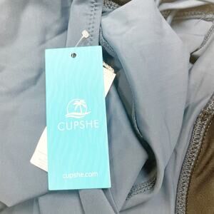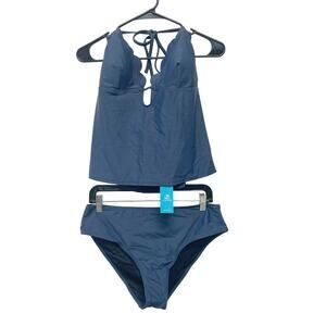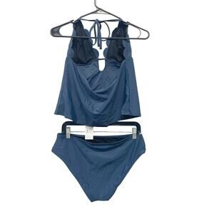 Cupshe Women's Navy Blue Solid Scalloped Tankini and Classic Hipster Set Large