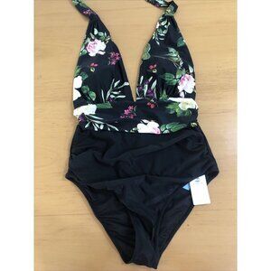 Cupshe Women's One Piece Bathing Suit V-neck Halter Beach Swimwear Sz XL.