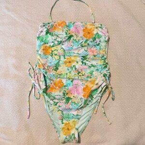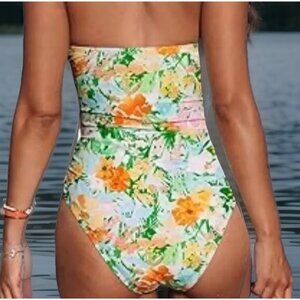 Cupshe Women’s One Piece Strapless Swimsuit Medium Floral Print Side Tie Halter