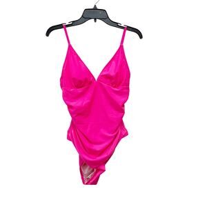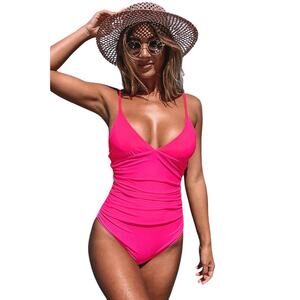 Cupshe Women's Pink Shirring V Neck One Piece Swimsuit Size Large