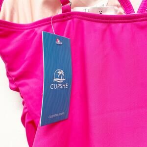 Bright and bold, this hot pink one-piece swimsuit by Cupshe features a flattering ruched design, adjustable straps, and soft lining for comfort.
