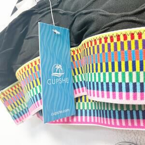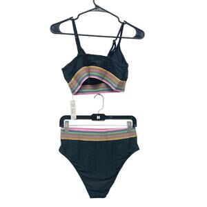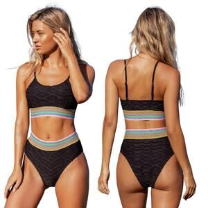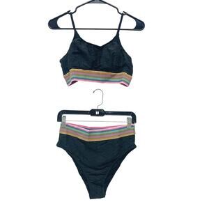 Cupshe Women's Rainbow Trim Textured Scoop Top & High Waist Bikini Set M