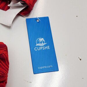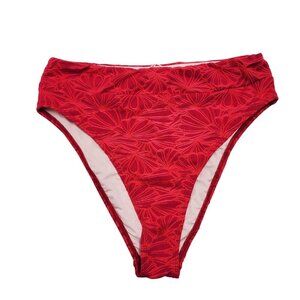 Cupshe Womens Red Floral High-Waist Bikini Set Scalloped Cross-Strap Size M