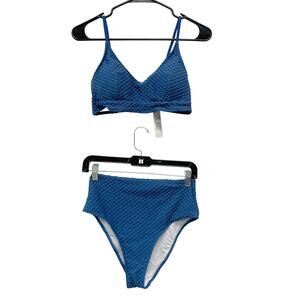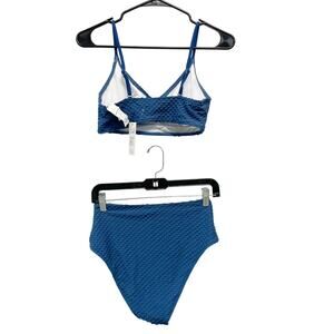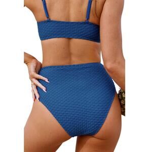 Cupshe Women's Royal Blue Textured Bikini Bralette & High Rise Bottoms Set M