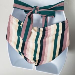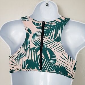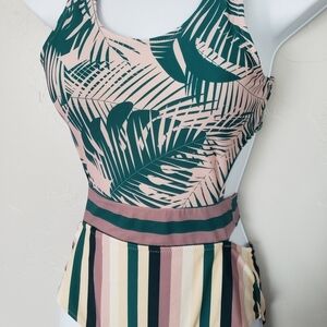 Cupshe Women's Small One Piece Swim Swimming Suit Pink Green Tropical Stripe