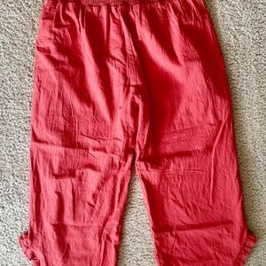 The Cupshe Women's Smocked Waist Straight Leg Pants in red, size XL, are a stylish addition to any woman's wardrobe. These ankle-length pants feature a smocked waist for a comfortable fit and a straight leg style that is on-trend. The vibrant red color adds a pop of color to any outfit, making these versatile pants perfect for various occasions. Item is “New with tags”. They have never been worn.