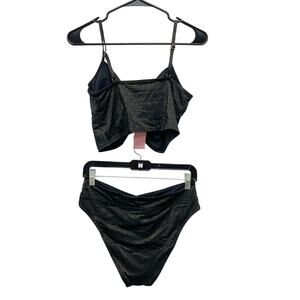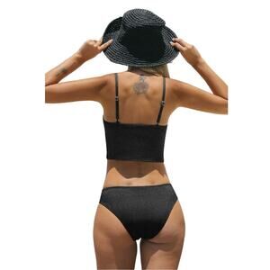 Cupshe Women's Sparking Lurex Twisted Tankini & Hipster Set Black Small