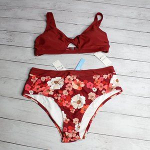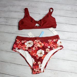 Cupshe Women's Swim Top High Waist Bikini Bottoms Plus Size 0X 14W Floral