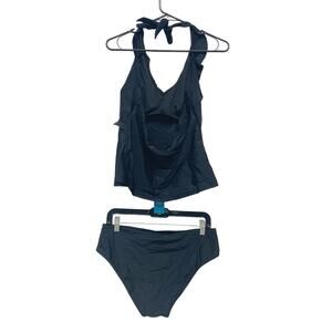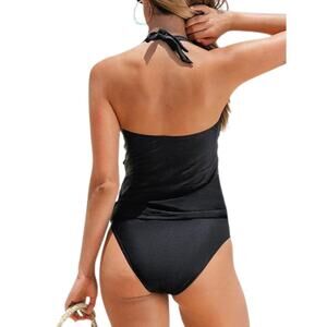 Cupshe Women's Tankini Swimsuit Ruffle Halter Self Tied Bathing Suit Black L