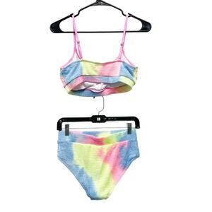 Cupshe Women's Tie Dye Wash Textured Scoop Neck High Waist Bikini Set Size M