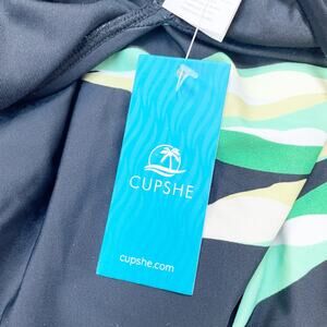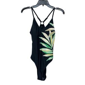 Cupshe Women's Tropical Leaf Print O Ring Back One Piece Swimsuit Black Size S