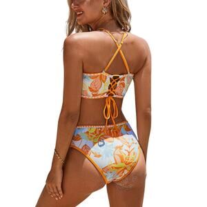 Experience vibrant swimwear with this Cupshe bikini set. Its floral pattern and comfortable fit make it a stylish choice for summer beach days.