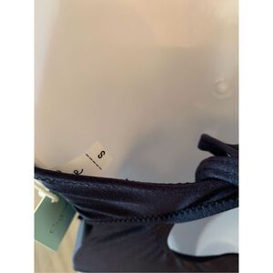 Cupshe Womens small Swimsuit One Piece V Neck Crocheted Trim Navy Blue Strappy