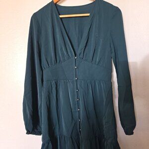 Cupshe XS Emerald Button Mini Dress Long Sleeve NWT