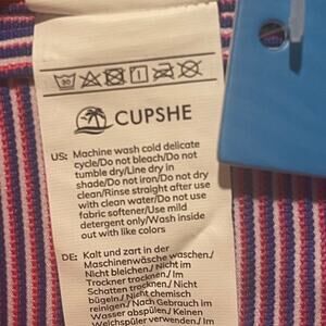 Make a splash in this Cupshe Women’s Striped 2-Piece Bikini Set in size XS. Featuring a vibrant blue and magenta striped design, this set includes a flattering V-neck top with adjustable tie-back straps and a high-waisted bottom for a comfortable, secure fit. Perfect for beach days, pool parties, or vacations.