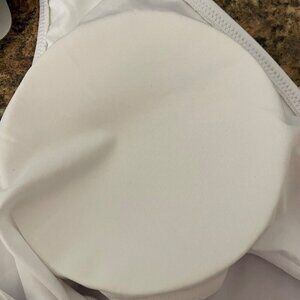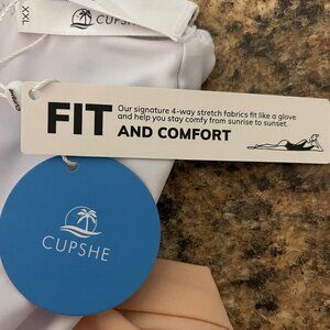 Stay vibrant by the water in this Cupshe colorblock one-piece swimsuit, size XXL. Featuring a stylish wrap front with a flattering tie waist, this suit blends shades of peach, orange, and white for a playful summer look. Made with 4-way stretch fabric and removable padded cups for all-day comfort and support. New with tags attached.