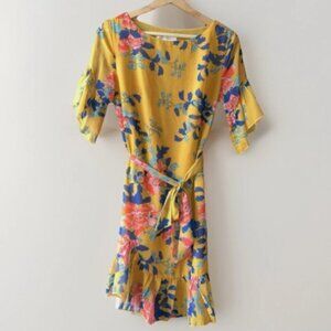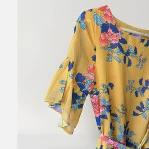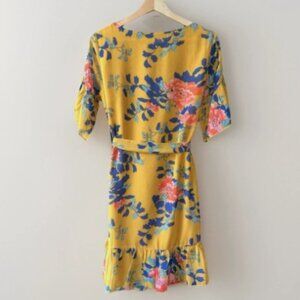 Cupshe Yellow Floral Mini Short Sleeve Dress Women's Size Small Beach Summer
