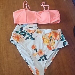 Cupshe bikini features floral high waisted bottoms bandeau top size small