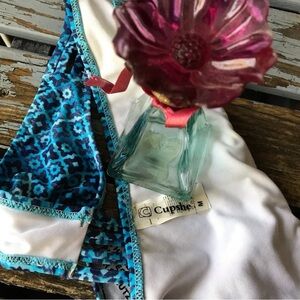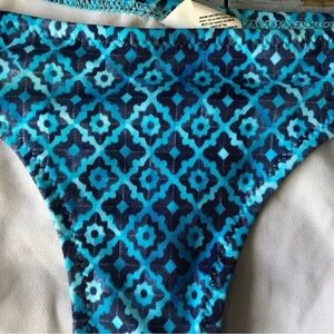 Cupshe blue print diamond with flowers bikini bottom. Three strap hip bands. Size medium.