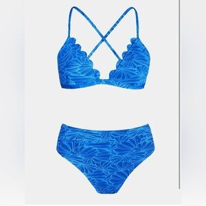 Cupshe jacquard Blue Floral high waisted Bikini Set Sz L nwt, 016