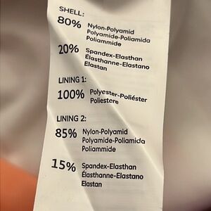 Lining 2 is made of 85% Nylon/Polyamid & 15% spandex.