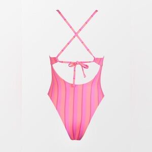Cupshe passion cheeky high leg Pink and Purple Striped Swimsuit Sz S nwt, 014