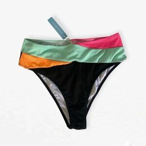 Super cute bikini bottoms. High waisted, size medium. I wear a size 10 in dress pants and these fit me well.