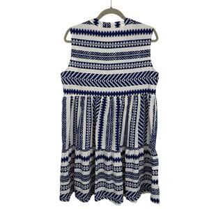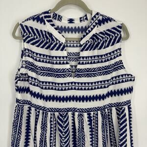 Cupshe sleeveless Shift Dress Size Large White Blue Aztec Beach Pullover