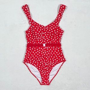 CUPSHE Red with white Polka Dots, Belted, One-Piece Swimsuit Women Sexy Cut Out back
