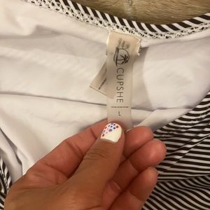 Cupshe two piece Pink top High waisted black and white striped bottoms Size large